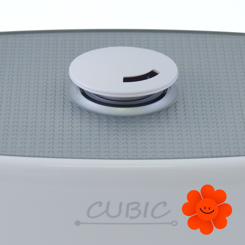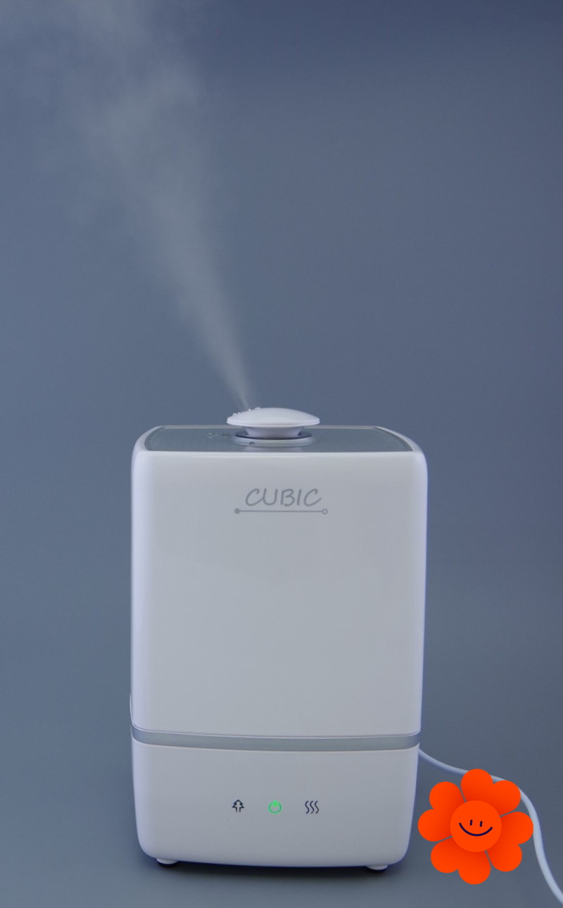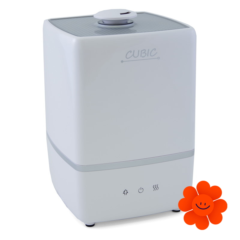 Model CUBIC, ktorý svojim tvarom pripomíná kocku, je vybavený dostatočne objemnou nádobou na vodu (5 l), takže i pri vysokom výkone vydrží zvlhčovač pracovat cez celú noc bez dolievania. CUBIC sa ovládá pomocou 3 gombíkov s LED podsvietením na čelnom panely.