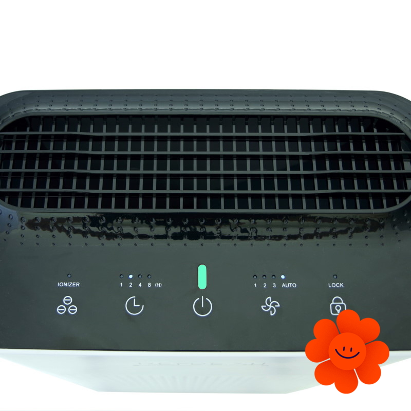 Pre jednoduchú identifikáciu jednotlivých funkcií je prístroj vybavený dotykovým LED displejom, na ktorom nájdete i farebný indikátor stavu ovzdušia a tomu zodpovedajúci výkon čističky – zelená farba znamená dobré podmienky, oranžová zhoršené ovzdušie a červená zlý stav vzduchu.
