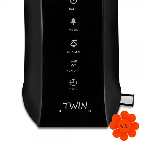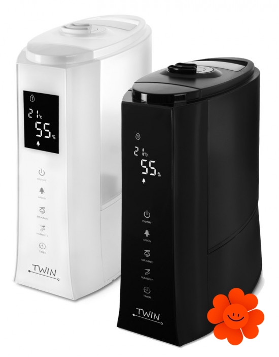 TWIN patrí medzi viacúčelové prístroje, lebo okrem hlavnej funkcie zvlhčovať vzduch (ultrazvukový z.), pomáha čistiť ovzdušie v miestnosti pomocou ionizátora ( 3 000 000 iónov / cm3) a taktiež si vďaka nemu môžete prevoňať svoj domov prostredníctvom esenciálnych olejov.