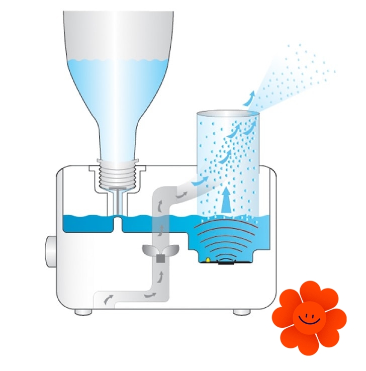 Model LB12 pracuje na princípe mikro-jemnej ultrazvukovej atomizácie, kedy rýchlo vibrujúca membrána prenáša kmitanie na vodu a tá sa mení na studenú vodnú paru, ktorá je distribuovaná do miestnosti. Výhodou tohto princípu je nízka spotreba energie pri masívnom výkone.