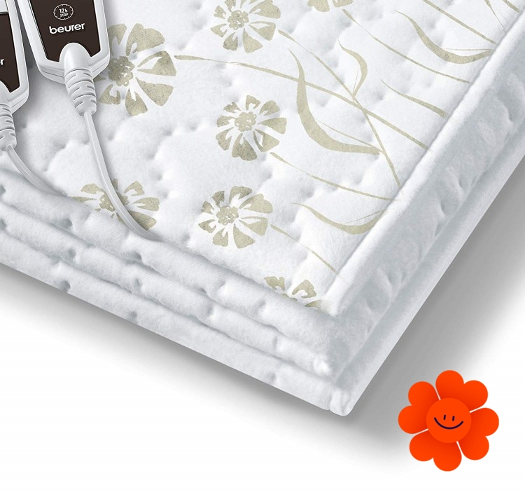 Táto výhrevná podložka UB 68 XXL nemeckej značky Beurer vás bude rozmaznávať počas spánku príjemným teplom, ktoré pomáha uľaviť boľavým svalom, kĺbom alebo pri bolestiach chrbtice či s problémami s krvným obehom.V tejto XXL verzii s rozmermi 150 x 160 cm sa na ňu zmestia pohodlne dve osoby. S dvomi ovládačmi a oddelenými zónami si môžu dvaja ľudia vychutnávať pohodlie so svojím osobným nastavením teploty. Pevný a zároveň jemný fleece materiál umožňuje dobrú cirkuláciu vzduchu. Prevedenie v peknom kvetovanom vzore ktorý spestrí vašu spálňu.