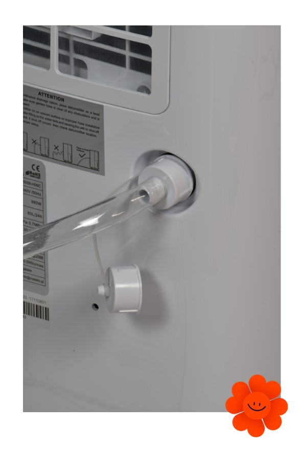 Blaupunkt Vaco 5008 je ďalej vybavený odpadovým portom s hadicou, ktorý umožňuje konštantné vypúšťanie kondenzovanej vody z odvlhčovača priamo do odpadu. V prípade ak zvolíte manuálne vylievanie kondenzátu, odvlhčovač má vstavanú funkciu AUTO STOP, vďaka ktorej sa prístroj automaticky vypne po naplnení nádrže na vodu (objem 6,5 l). Rukoväte na stranách skrine a kolesá uľahčujú presun zariadenia medzi miestnosťami, v prípade potreby.