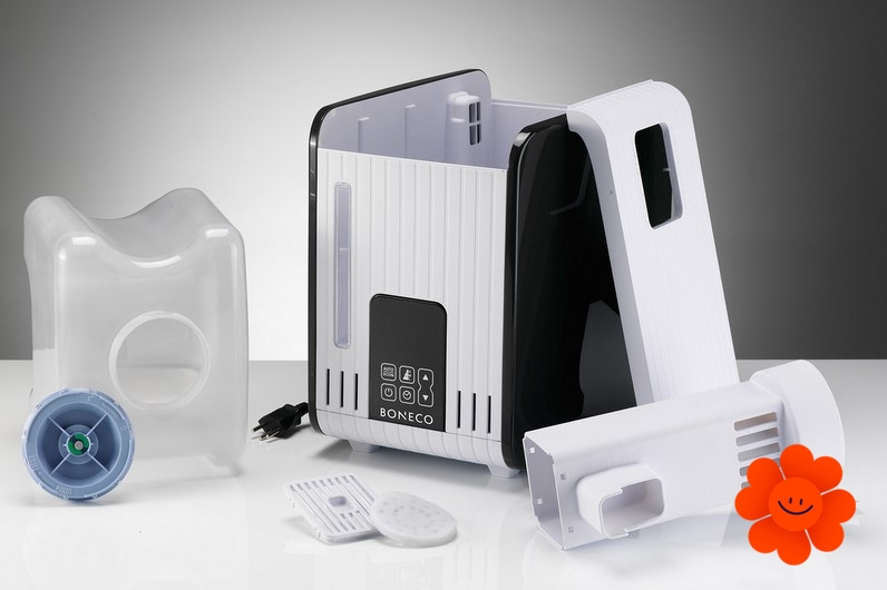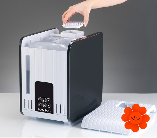 Boneco S450 má zabudovanú automatickú funkciu upozornenia na potrebu čistenia zariadenia. Na odvápnenie zvlhčovača sa odporúča používať prostriedok CalcOff od spoločnosti Boneco.