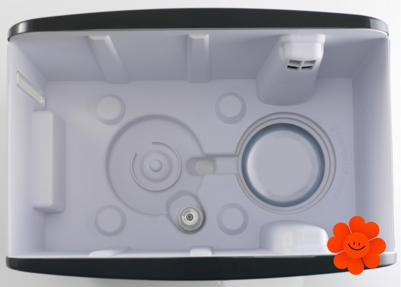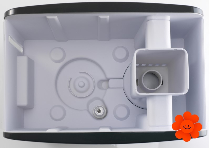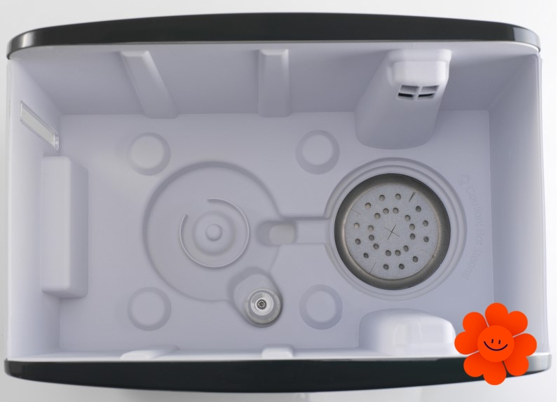 Zvlhčovač má 7 l nádrž na vodu. Ako náhle je hladina vody nižšia ako minimálna stanovená úroveň, zariadenie sa samé vypne. Samotné zvlhčovanie vzduchu v miestnosti si môžete spríjemniť použitím aromatického oleja, ktorý sa pridáva do zásobníka v hornej časti krytu parnej trubice.