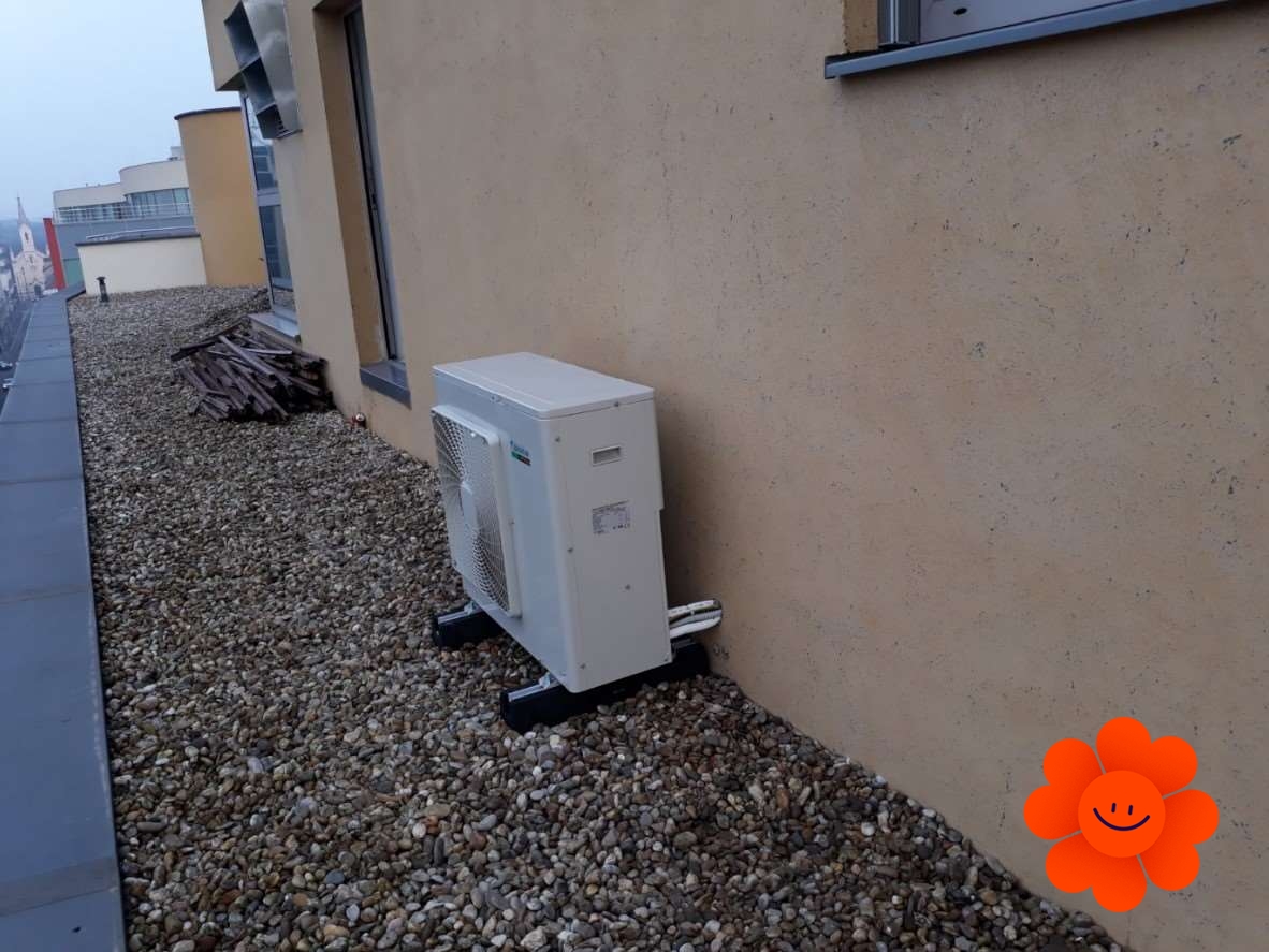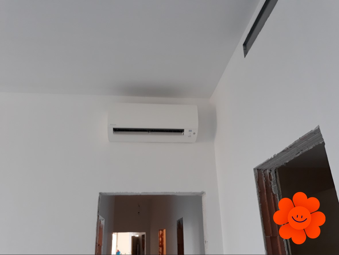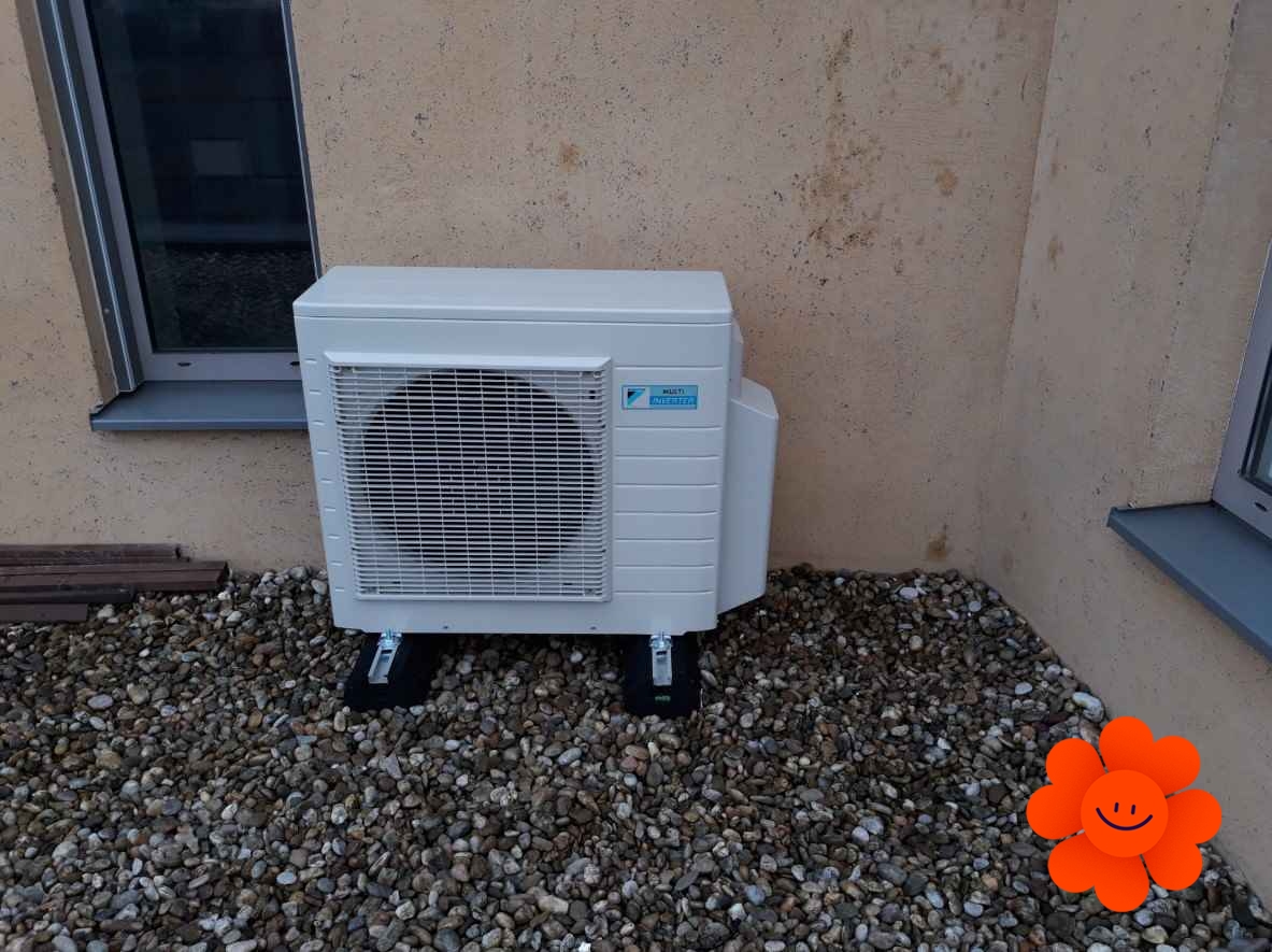 Montáž klimatizácií Daikin Perfera v novostavbe. Rozvody sú vedené cez stenu k vonkajším jednotkám.
