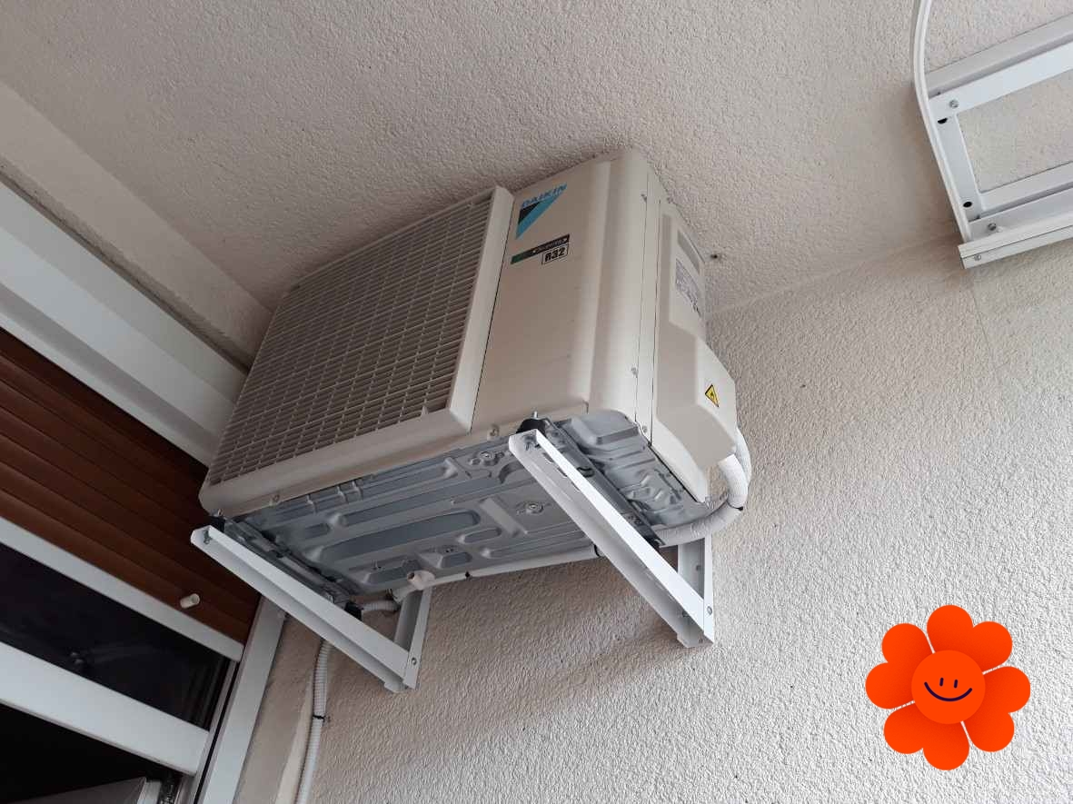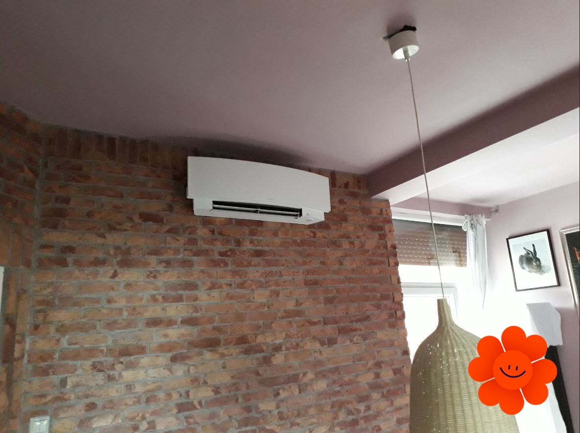 Montáž klimatizácie Daikin Emura na tehlovú stenu v byte. Rozvody cez stenu k vonkajšej jednotke