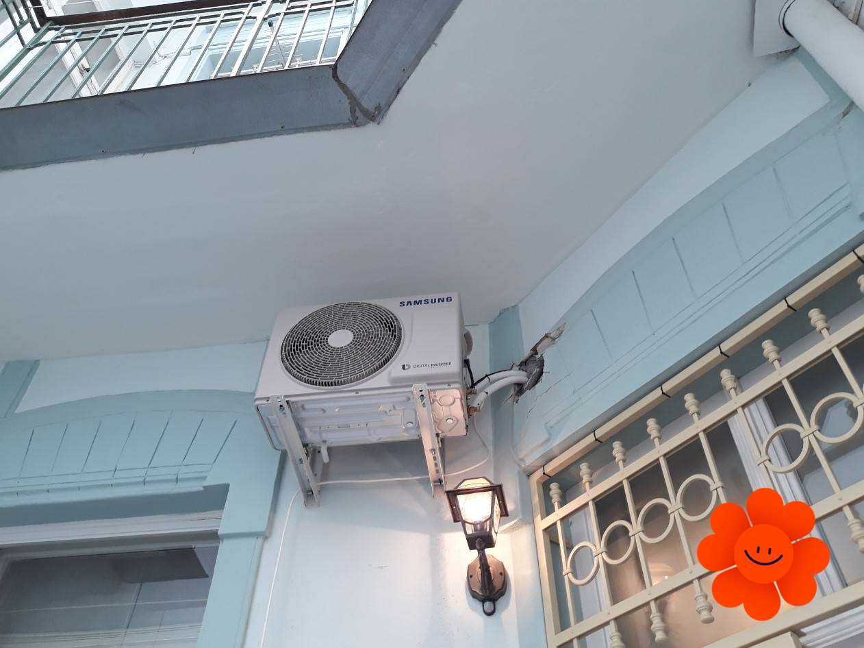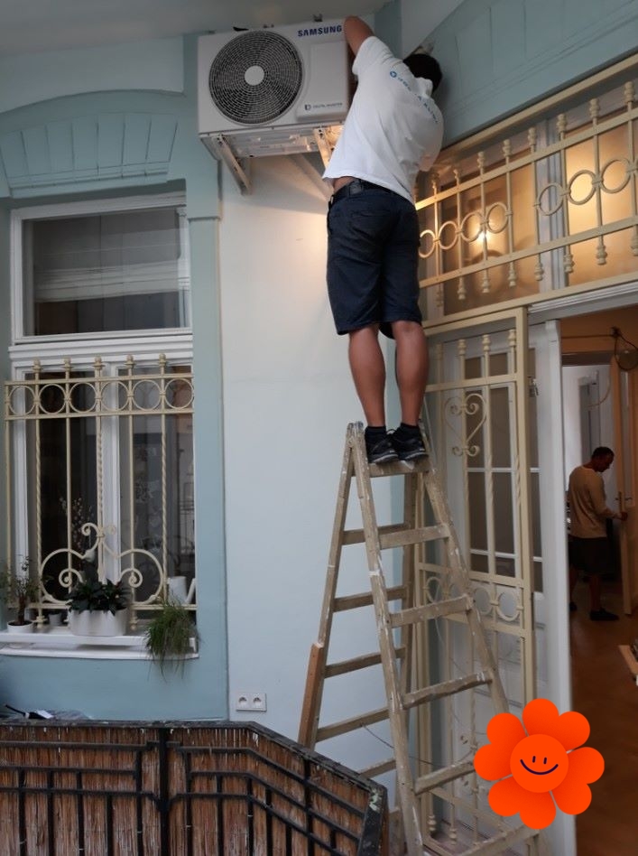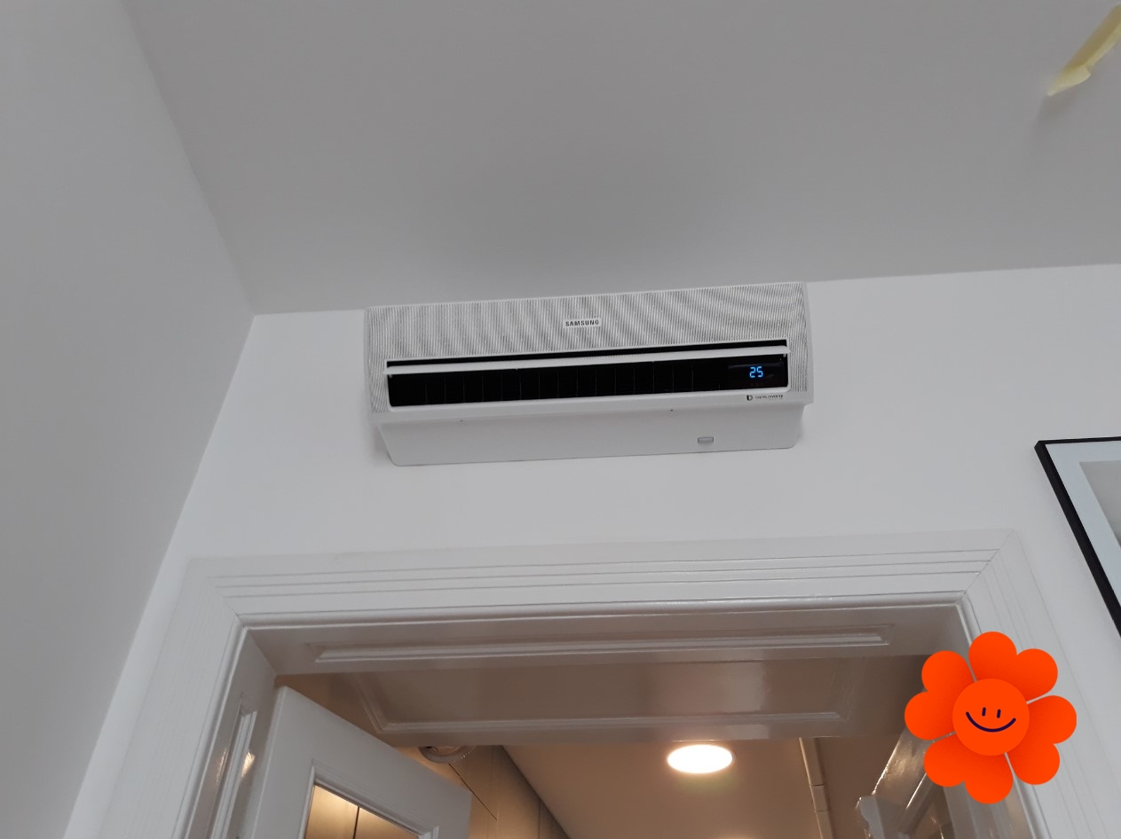 Montáž klimatizácie Samsung AR9500 Wind-Free Standard do bytu nad dvere. Rozvody sa ťahajú vrchom steny k vonkajšej jednotke.