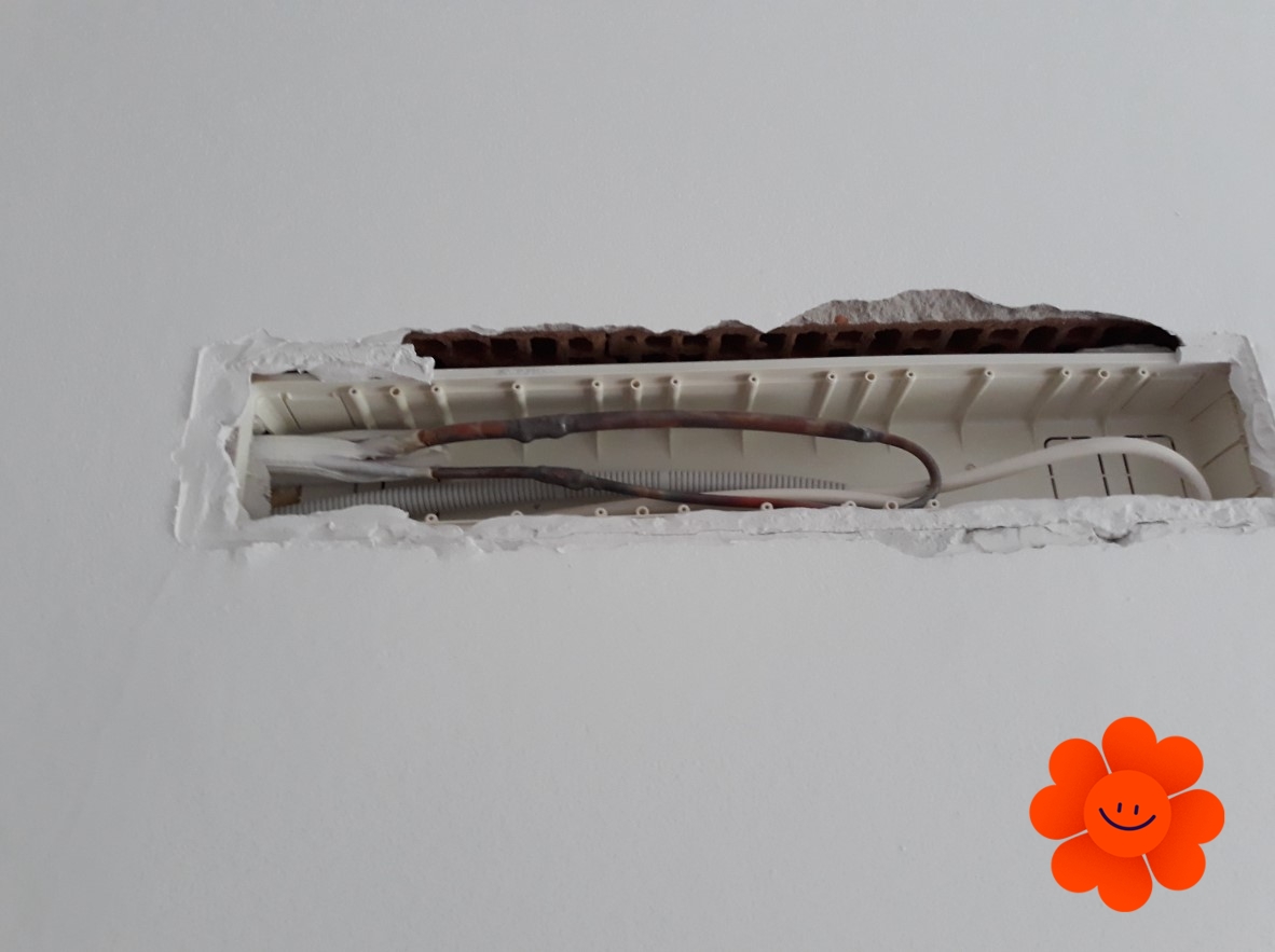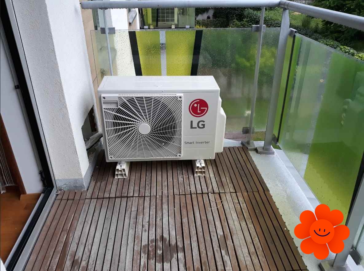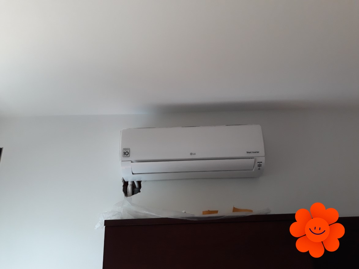 Montáž klimatizácie LG Deluxe na stenu v byte. Rozvody vedú skrz stenu k vonkajšej jednotke na balkóne.
