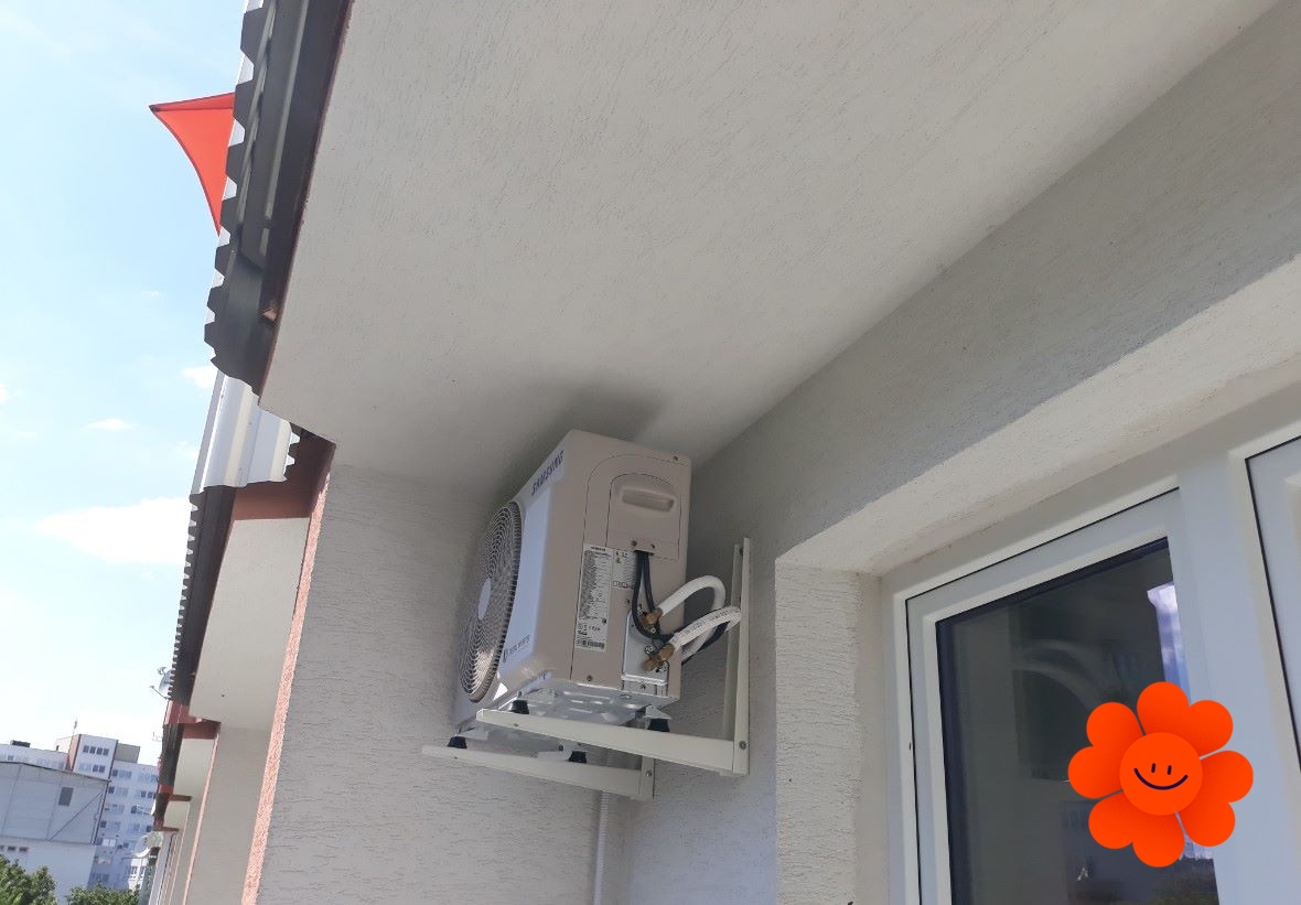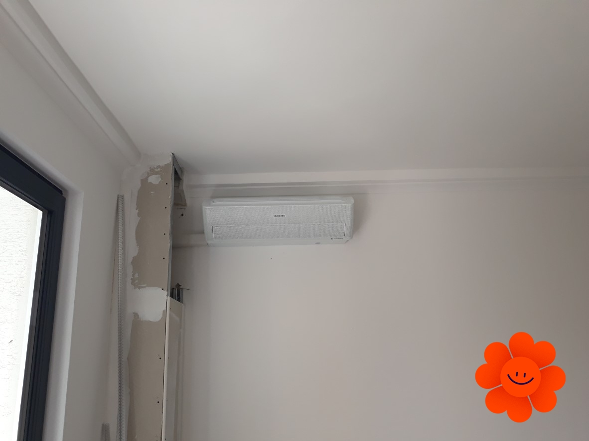 Montáž klimatizácie Samsung AR9500 Wind-Free Standard do bytu. Rozvody k vonkajšej jednotke vedú priamo cez stenu.