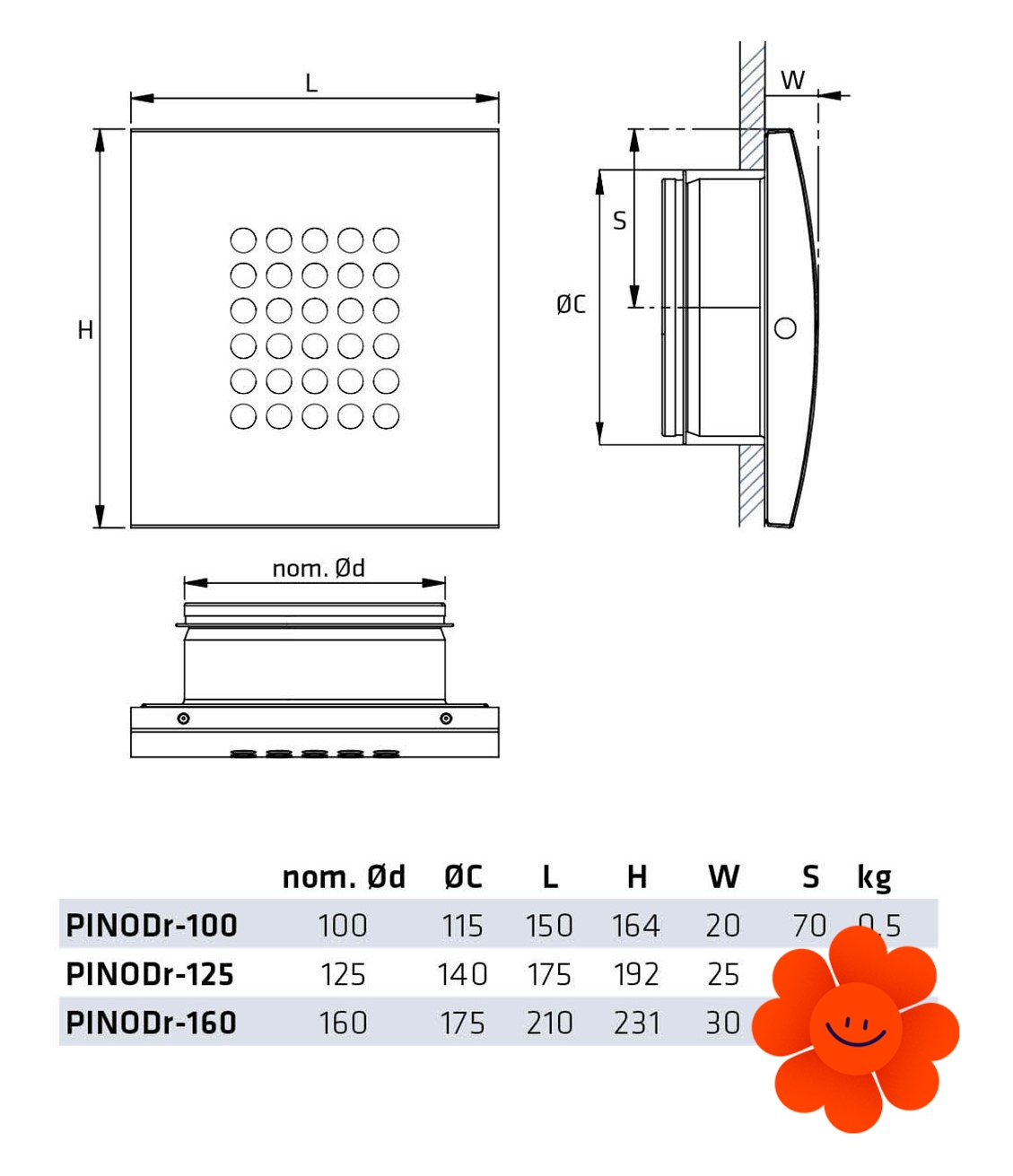 Materiál difúzora a pretlakovej komory je pozinkovaný oceľový plech bielej farby RAL 9003. Trysky sú z recyklovaného ABS.