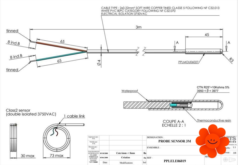 Fenix Watts podlahová sonda je určená k snímaniu teploty podlahy ale môže byť taktiež použitá na meranie teploty vzduchu.