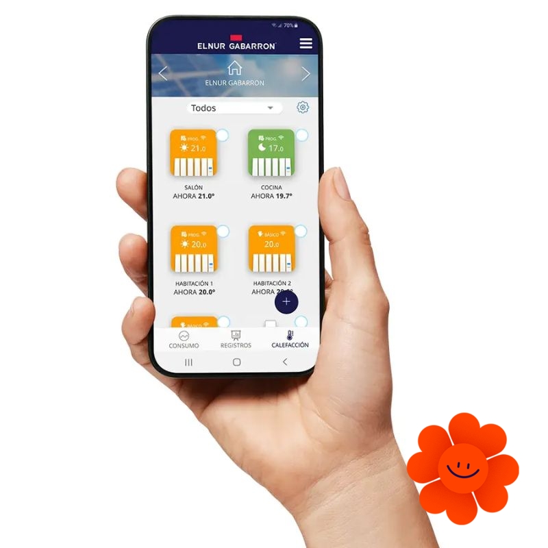 Gabarrón Ingenium Direct RDC9 je programovateľný digitálny radiátor s integrovaným G Control Systémom, ktorý umožňuje riadiť vykurovanie kedykoľvek a odkiaľkoľvek cez WiFi prostredníctvom PC, smartfónu alebo tabletu s Android a iOS. Aplikácia Elnur Gabarron umožňuje nastavovať teploty a sledovať spotrebu energie, pričom týždenný program automaticky prispôsobuje vykurovanie podľa hodín a dní v týždni, čím prináša komfort a úsporu energie. Pre sledovanie spotreby jednotlivých radiátorov je potrebné doobjednať elektromer G Control PM.