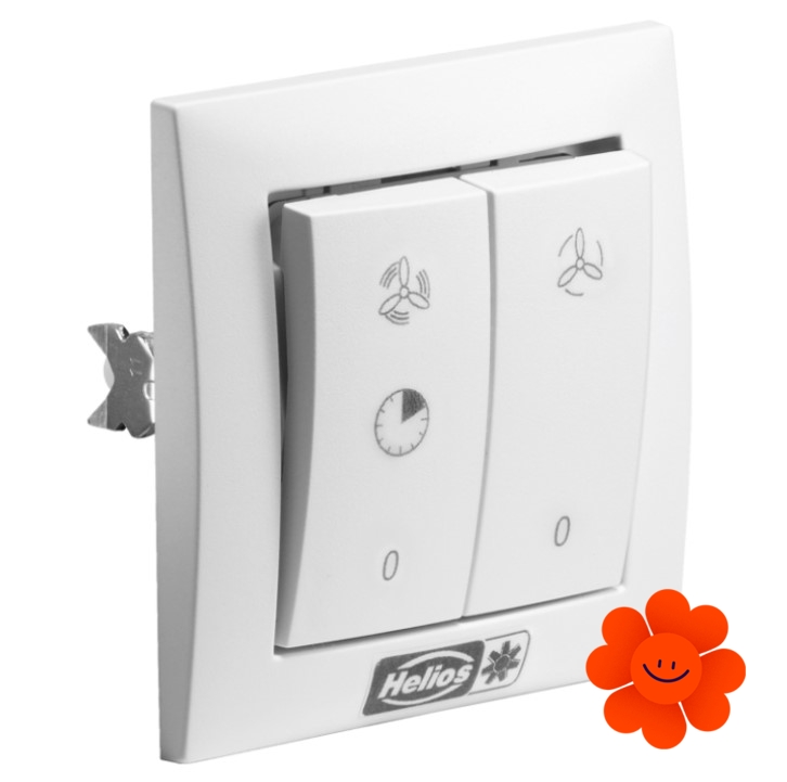Helios DSEL 2 prevádzkový vypínač/prepínač je určený výhradne pre modely ventilátorov Helios MiniVent M1/150 N/C a Helios MiniVent M1/150 F