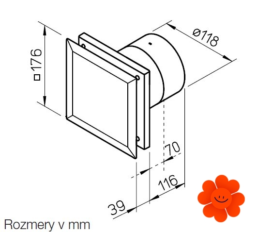 Typ BF Silent - axiálny ventilátor so vstavanou spätnou klapkou