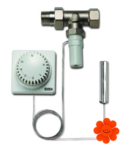 Pozostáva z termostatu s diaľkovým prestavovaním a diaľkovým snímačom.