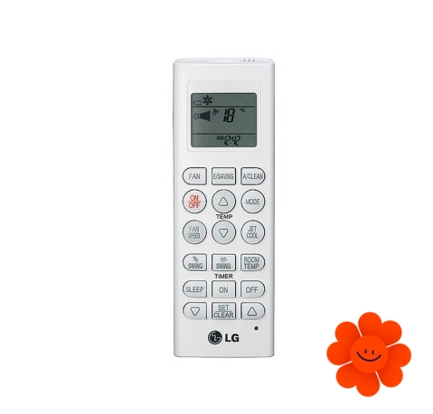 Diaľkové ovládanie bielej farby pre klimatizácie LG. Môže ovládať akúkoľvek vnútornú jednotku LG vybavenú infračerveným príjmačom.