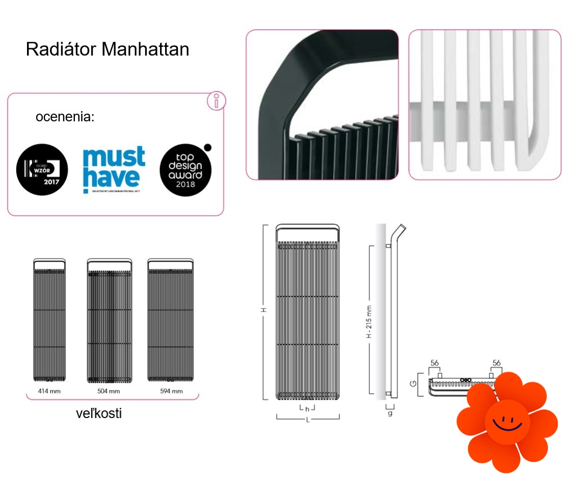 Štíhly a plochý radiátor Manhattan svojím originálnym tvarom zaujal aj na prestížnych dizajnérskych súťažiach. Zachováva si tradičný vzhľad vďaka za sebou radeným profilom, ktoré sa spájajú do ľahkej vzdušnej konštrukcie. Do vášho domova prinesie závan sviežeho dizajnu.