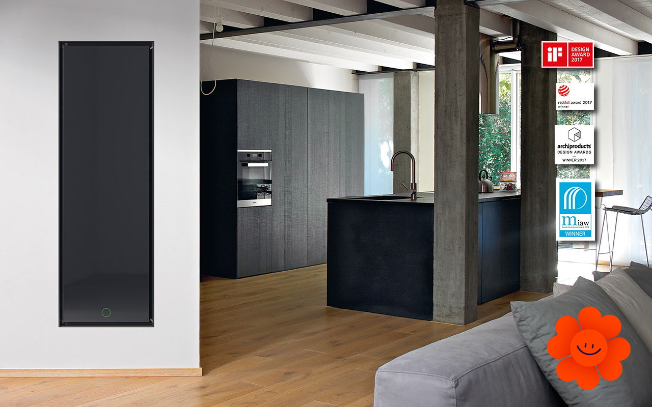 Ľahký kazetový rám umožňuje zavesiť radiátor na stenu alebo vložiť do steny. Na výber máte model Face vo forme závesného vykurovacieho panelu a model FACE ZERO s montážou do steny, po ktorej vyčnieva iba o 1,5 mm.