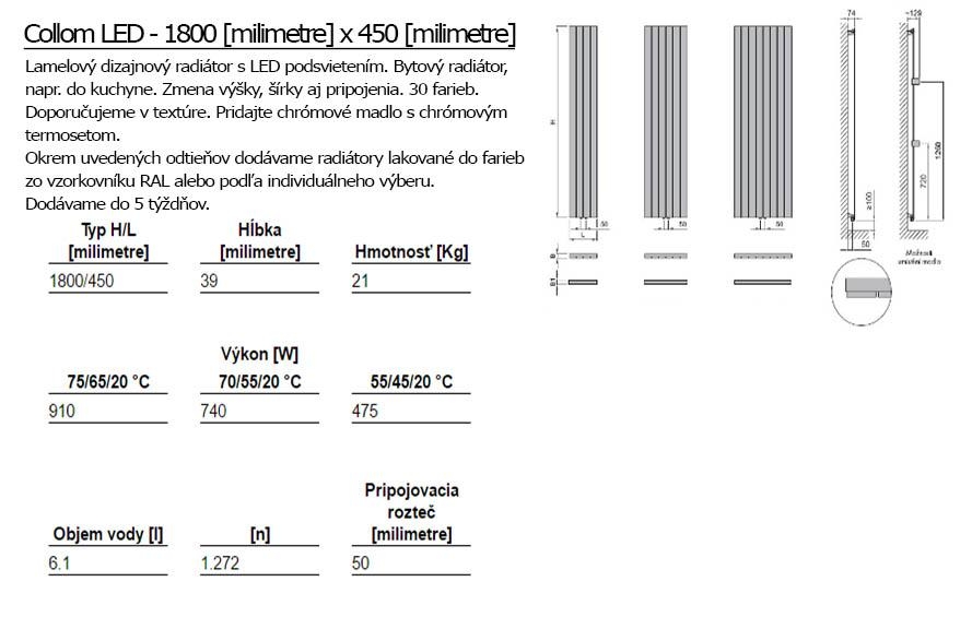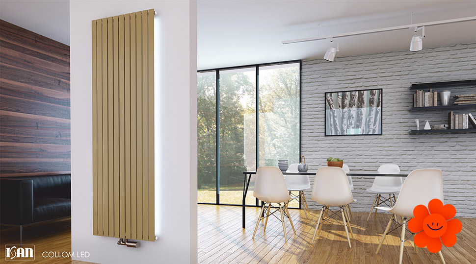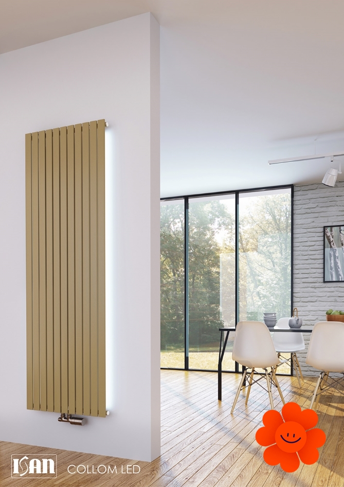 ISAN Collom je lamelový dizajnový radiátor s LED podsvietením. Má veľmi malú hĺbku s profilmi, ktoré pôsobia subtílne.