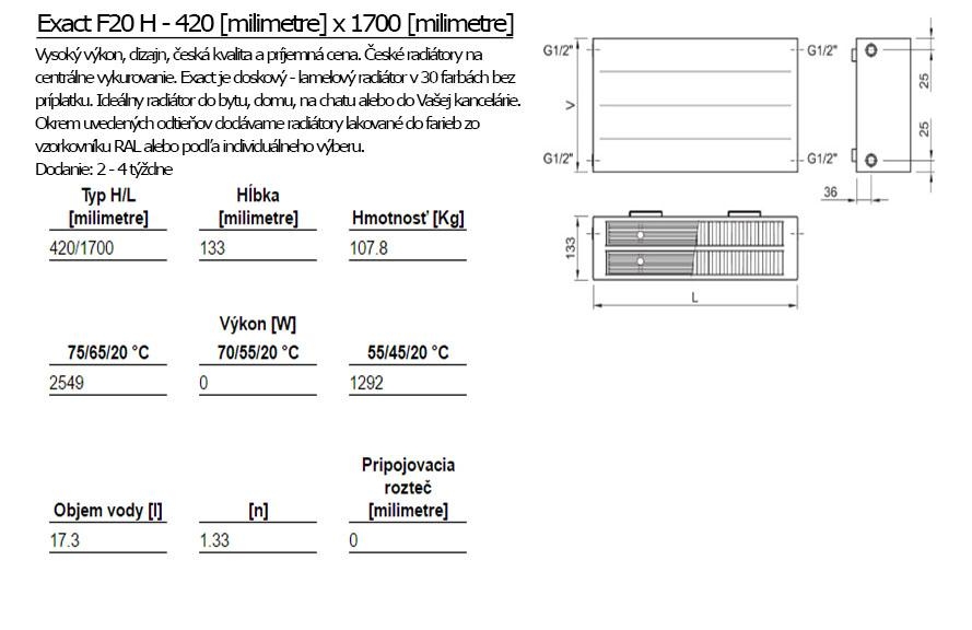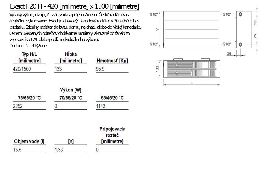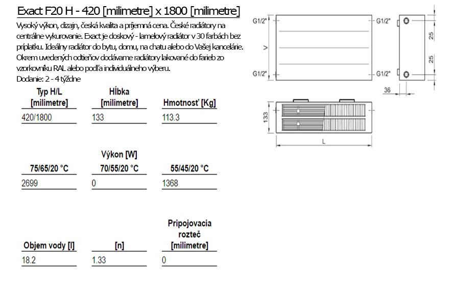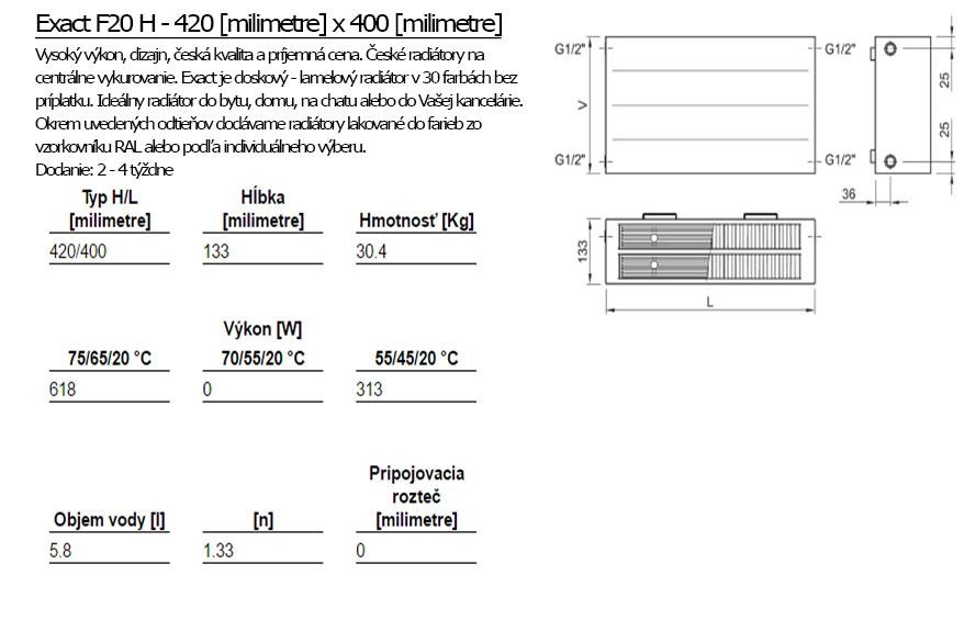 ISAN Exact F20 H je doskový, lamelový radiátor. Vyznačuje sa vysokým výkonom, elegantným dizajnom a príjemnou cenou. Najviac sa hodí do bytu, domu, kancelárie či na chatu.