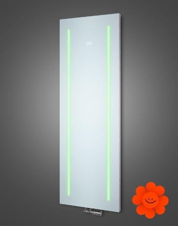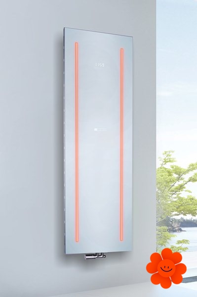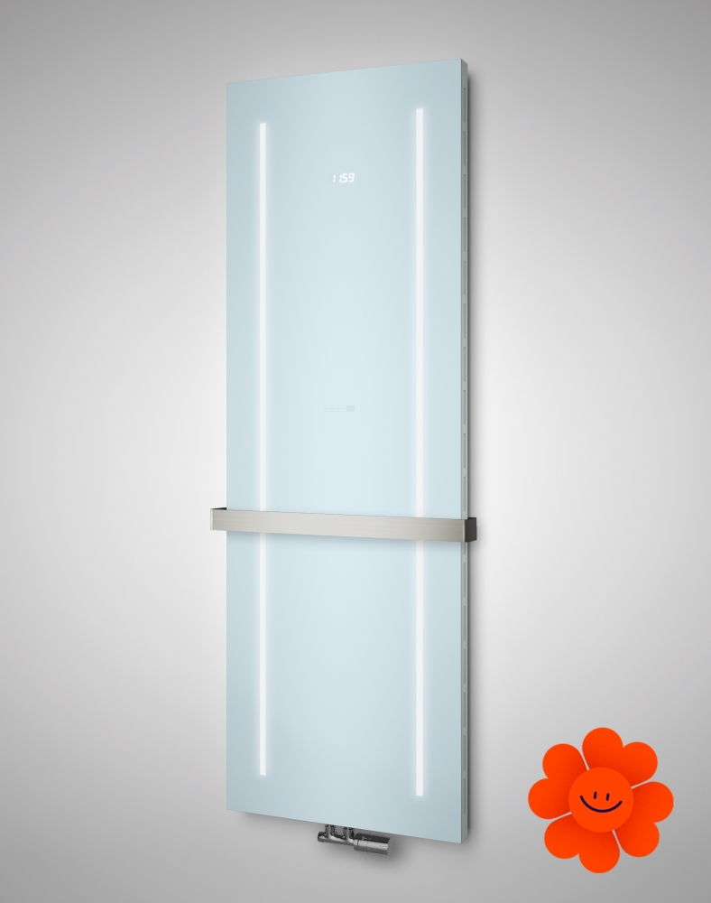 Tento bytový sklenený radiátor funguje na vodný ohrev. Vďaka vysokému výkonu a minimalistickému dizajnu sa hodí do každého moderného interiéru. Radiátor je doplnený o LED podsvietenie s možnosťou zmeniť farbu a jas. Radiátor má integrovaný displej, ktorý zobrazuje čas, teplotu okolia alebo vlhkosť.