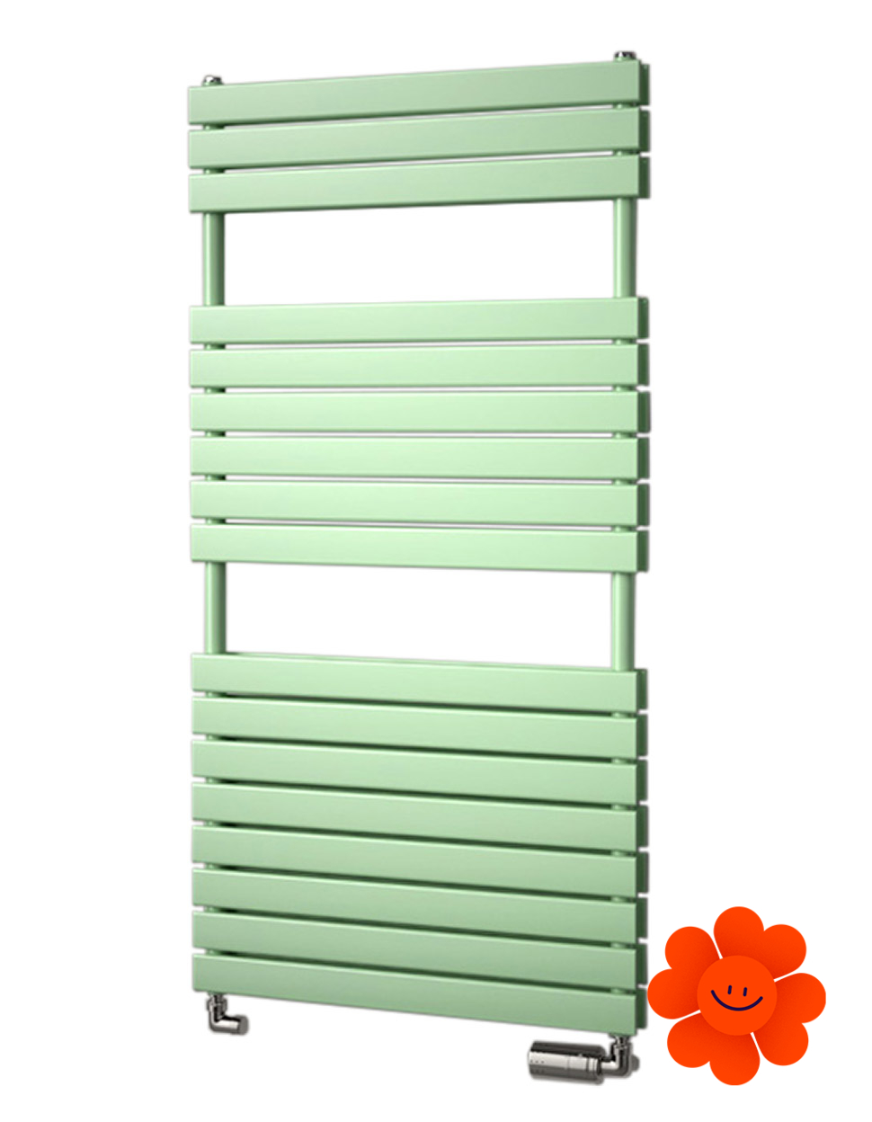 Bočné opláštenie radiátora je dostupné vo viacerých farebných prevedeniach, vďaka čomu si môžete prispôsobiť vzhľad radiátora podľa interiéru. Štandardné spodné centrálne pripojenie s rozstupom 50 mm (D50). Diskrétny vetrací systém: elegantná konštrukcia skrýva odvzdušňovací otvor.