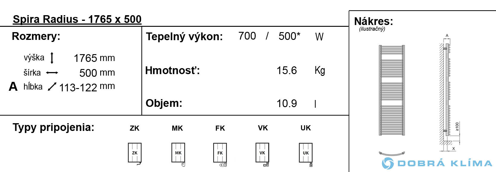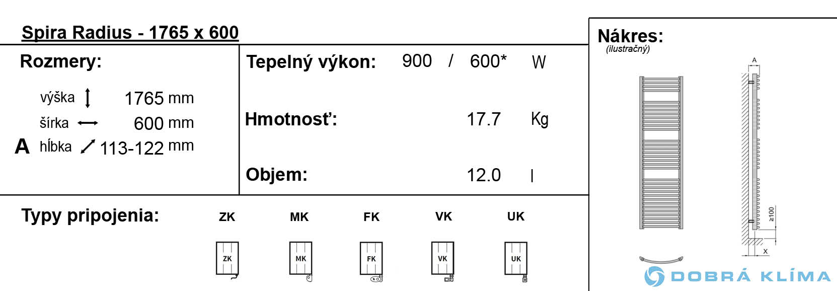 Spira Radius funguje na elektrický a vodný ohrev. Môžete si vybrať zo širokej ponuky rozmerov.