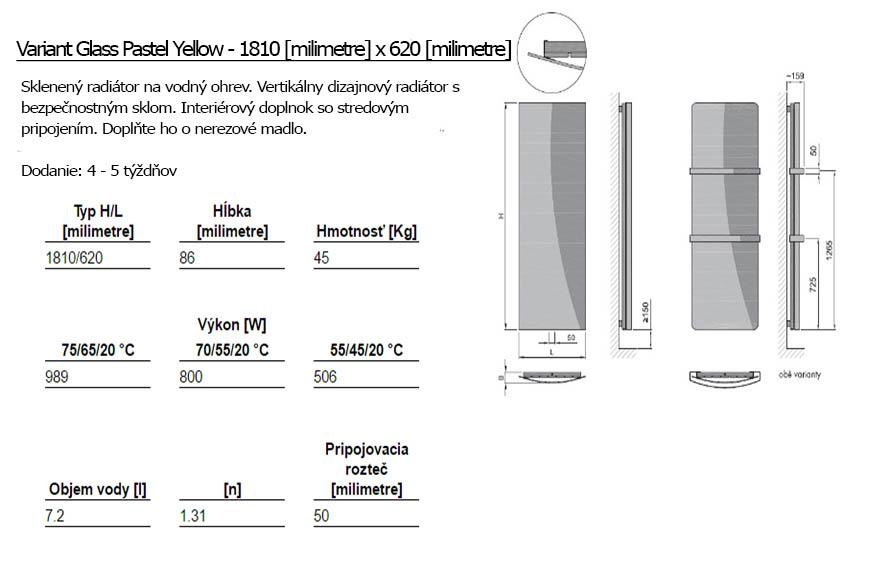 Dizajnové kalené bezpečnostné sklo s harnatým tvarom skrýva výkonné oceľové trubky. Variant Glass je zárukou vysokej kvality, rýchleho ohrevu miestnosti a vysokého vykurovacieho výkonu. Máte možnosť doplniť chrómové madlo a chrómový termoset.