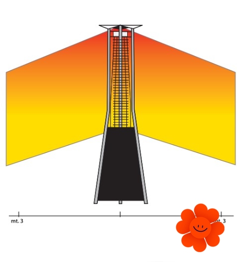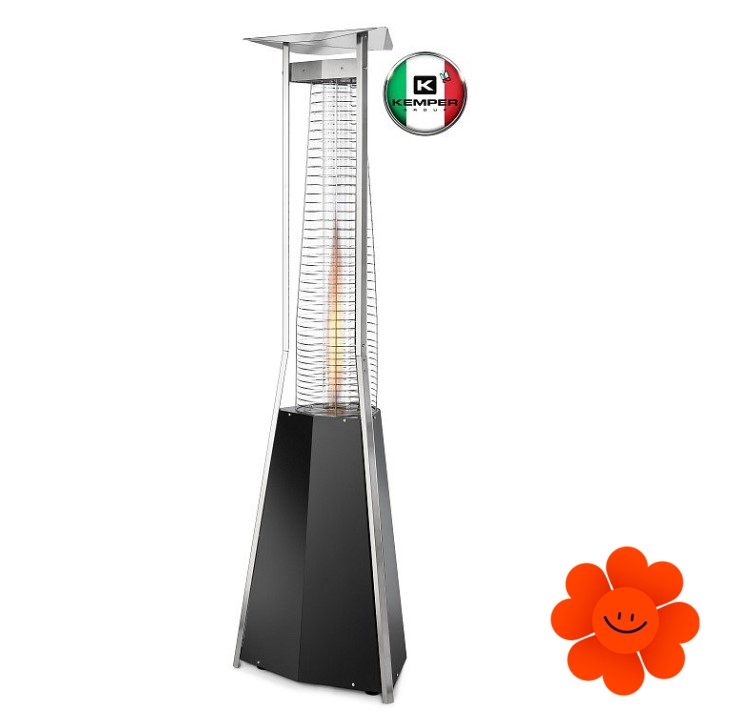 Jedná sa o 100% taliansku výrobu a dizajn. Robustná a leštená konštrukcia ohrievača z nehrdzavejúcej ocele a práškovo obaleného puzdra je v čiernom farebnom prevedení. Plameň ktorý vzniká v sklenenej trubici dodáva priestoru nielen teplo, ale aj pre príjemnú atmosféru.