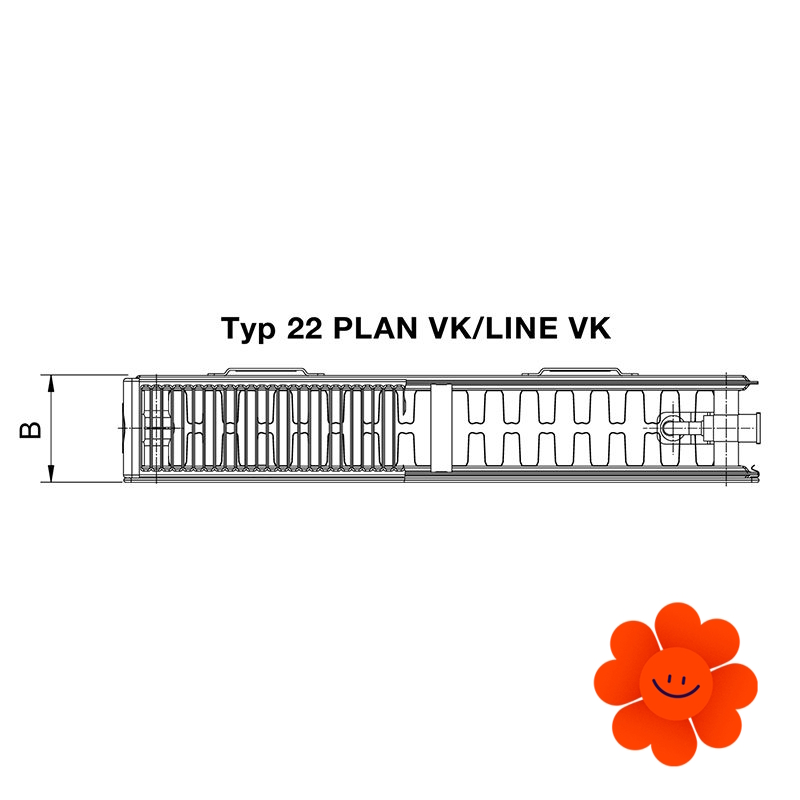 Model RADIK PLAN VK je doskové vykurovacie teleso v prevedení PLAN a v prevedení VENTIL KOMPAKT, ktoré umožňuje pravé spodné pripojenie na vykurovaciu sústavu s núteným obehom. Zo zadnej strany sú privarené dve horné a dolné príchytky, vykurovacie telesá s dĺžkou 1800 mm a dlhšie majú navarených šesť príchytiek. Výnimku tvoria doskové vykurovacie telesá výšky 200 mm, ktoré nemajú zo zadnej strany navarené príchytky.