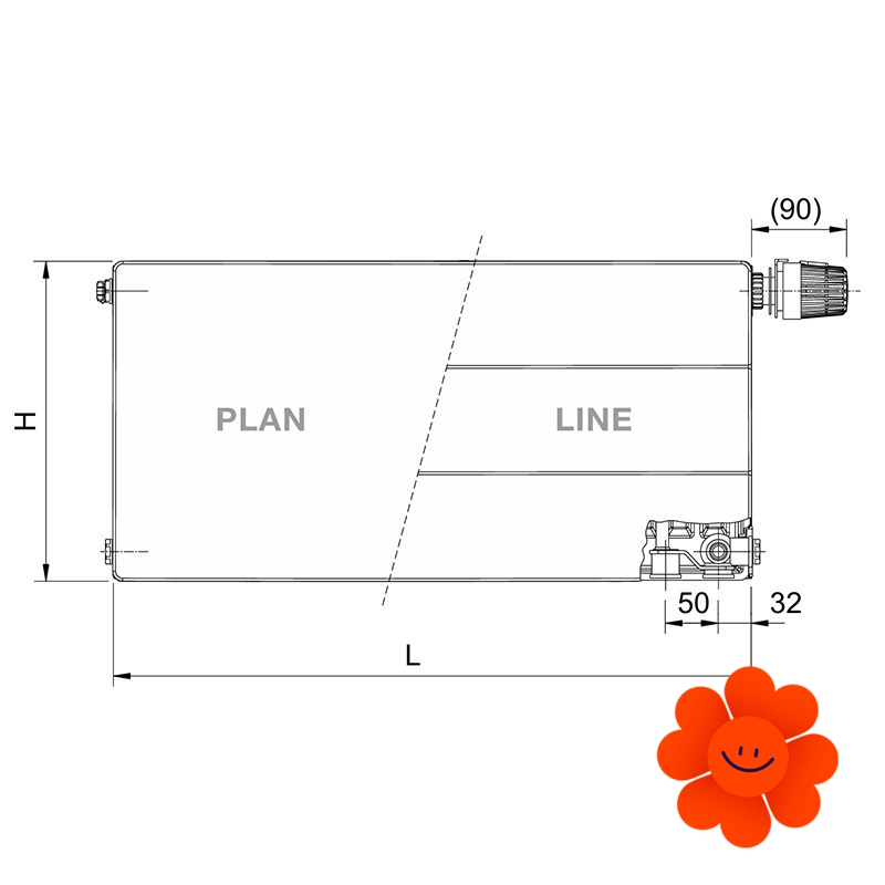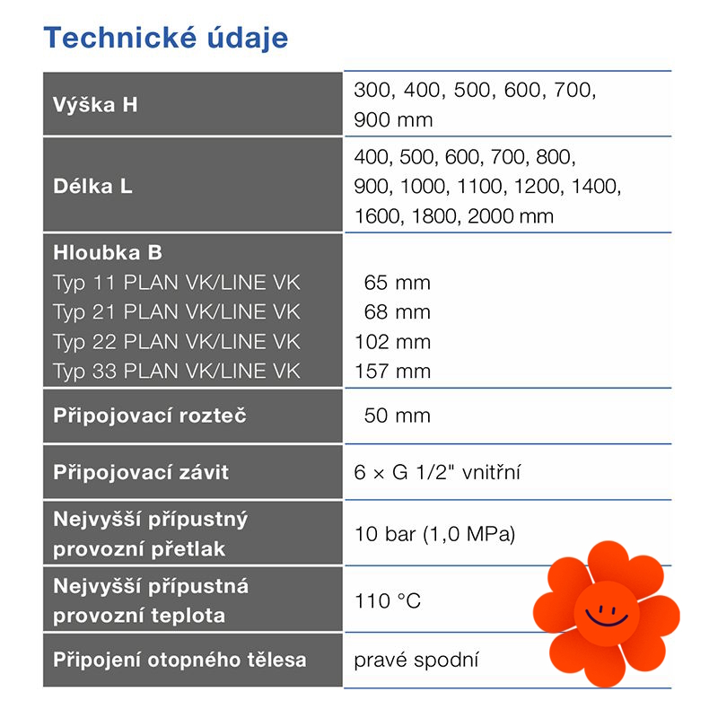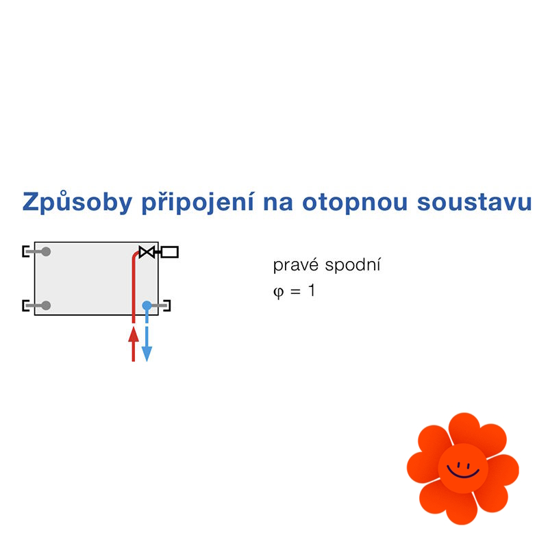 Doskové vykurovacie teleso s hladkou čelnou doskou a pravým spodným pripojením