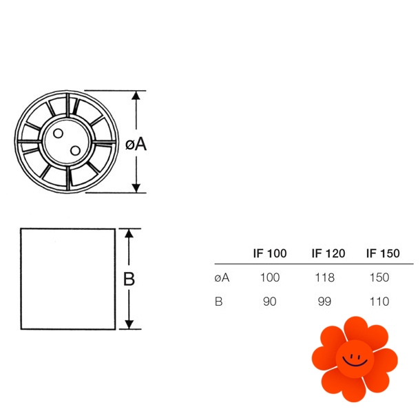 Axiálny ventilátor IF vyrobený z termoplastu ABS je určený na odsávanie z kúpeľní, šatní alebo pomocných miestností. Spätná klapka BDS sa objednáva zlvlášť ako prislušenstvo.