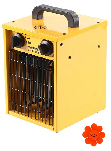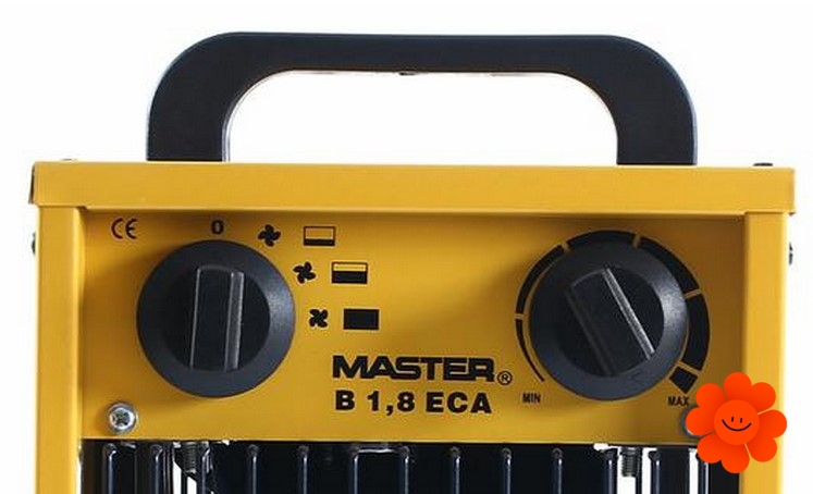Ohrievač Master B 1.8 ECA má objem výmeny vzduchu 184 m3/hod. Zabudovaný prepínač umožňuje prepnutie medzi výkonmi - poloha 1 pre vypnutie, poloha 2 pre výkon 0,65 kW, poloha 3 pre výkon 1,3 kW a poloha 4 pre výkon 2,0 kW. Tento elektrický ohrievač spotrebiteľovi ponúka výhodný pomer cena : výkon, nespotrebováva kyslík, je bez dymu a zápachu a má nízku hlučnosť. Motory sú vybavené tepelnou ochranou, odolné kovové prevedenie zaručuje dlhú životnosť.