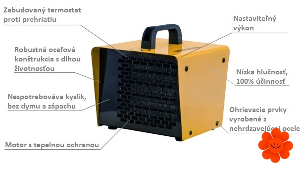 Domáce elektrické ohrievače s ventilátorom sú určené na vykurovanie uzatvorených priestorov v domácnosti, pričom sú vybavené termostatom, zabraňujúcim prehriatiu zariadenia, a prepínačom výkonu. Nepotrebujú žiadnu drahú odbornú inštaláciu - stačí ich zapojiť do zásuvky a zapnúť.