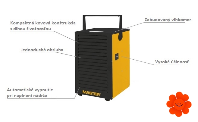 Charakteristika poloprofesionálneho odvlhčovača vzduchu Master DH 732: