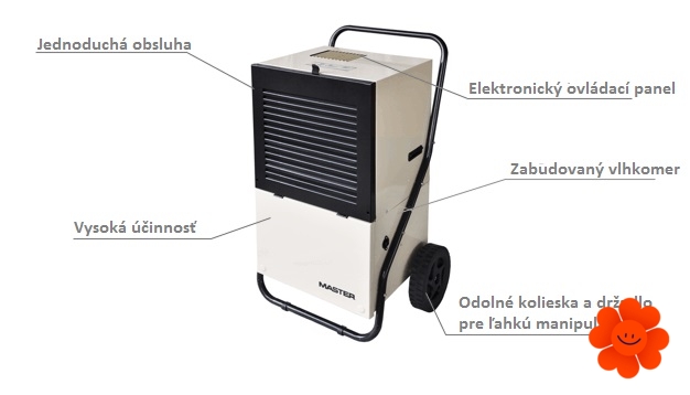Skrinka zariadenia je zhotovená z plastu odolného voči nárazom a to v prevedení bielej a čiernej farby. V zadnej časti sa nachádza sacia mriežka a odoberateľný kryt, ktorý chráni nádobu na kondenzát. Výtlak vysušeného vzduchu je cez mriežku v hornej časti skrine. Zo zadnej strany skrinky je otvor na hadicu cez ktorú môžete vypúšťať kondenzát priamo do odpadu.
