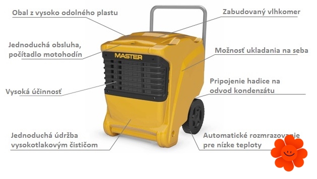 Charakteristika profesionálneho odvlhčovača vzduchu Master DHP 45: