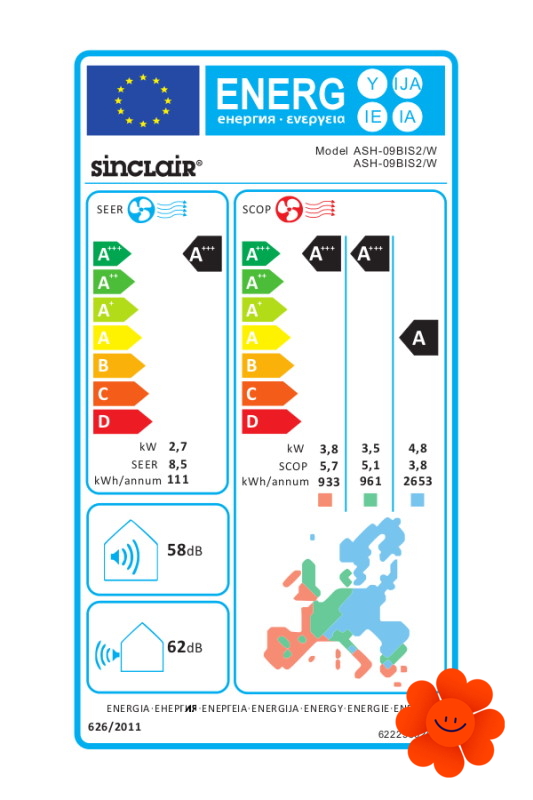 Klimatizačná jednotka Sinclair Spectrum Plus ASH-09BIS2/W má chladiaci výkon 2,7 kW, vykurovací výkon 3,5 kW a je určená pre miestnosti s rozlohou do 25 m2.