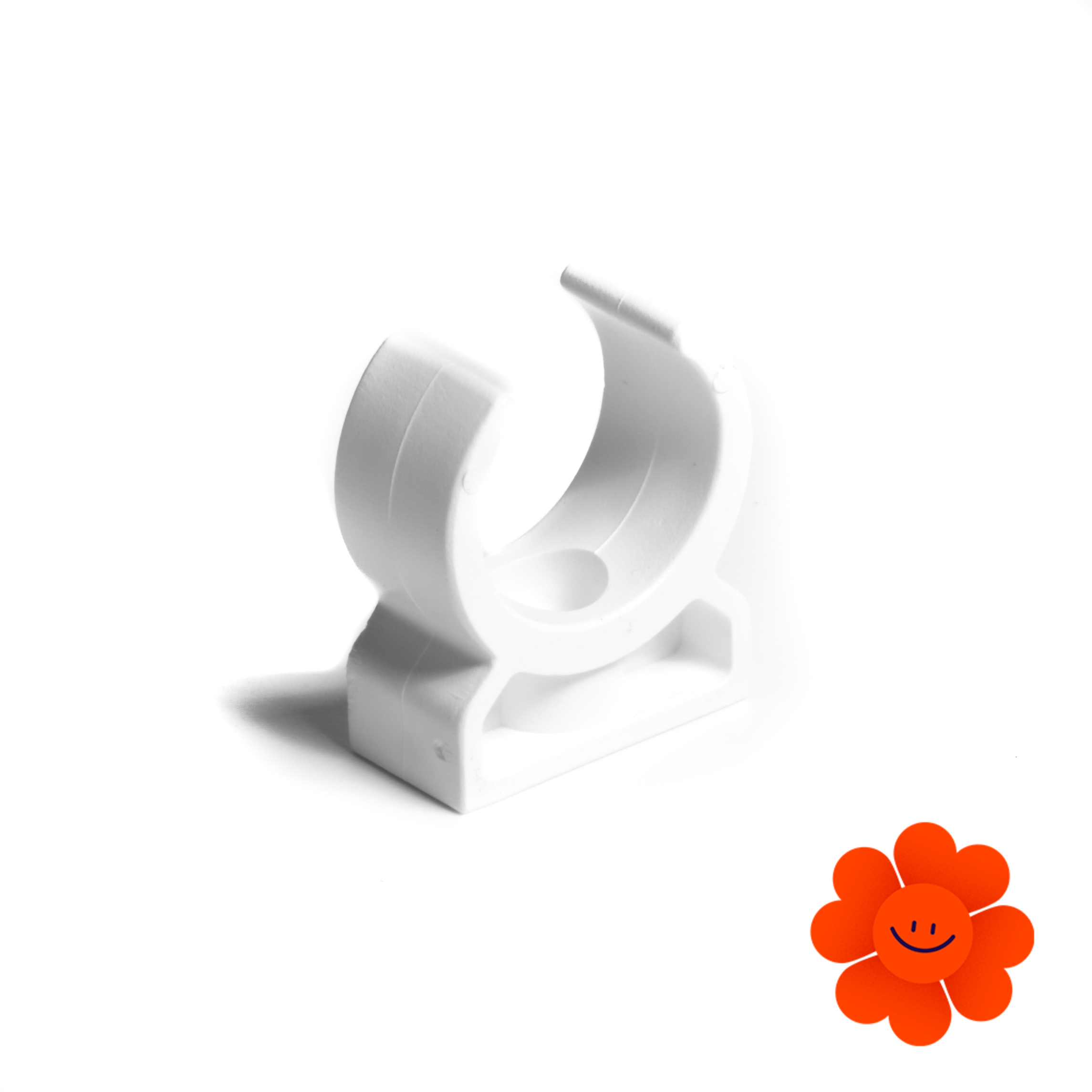 Príchytka z PVC materiálu bielej farby slúži na fixáciu PVC hadíc alebo potrubia na stenu.