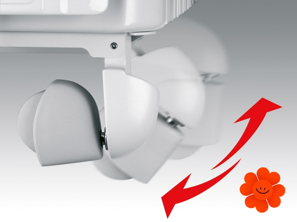 Radiátory série KH 77 majú špeciálne tepelné otvory, ktoré má DeLonghi celosvetovo patentované  a udržiavajú teplotu povrchu rebier v hodnotách, ktoré sú dané európskymi bezpečnostnými normami. Otvory prispievajú k cirkulácii teplého vzduchu. Je tak zabezpečená dokonalá spojitosť bezpečnosti a rýchleho vyhrievania miestnosti.