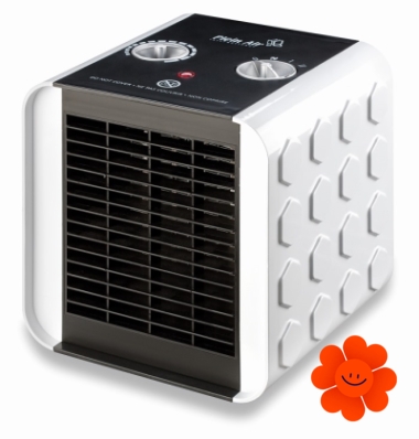 Teplovzdušný ventilátor je v bielej alebo čiernej farbe.