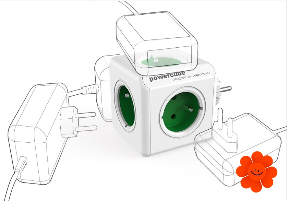 Základný model rady PowerCube v zelenobielom prevedení je multifunkčný zásuvkový systém, ktorý ponúka možnosť pripojenia do piatich zásuviek (250V~, 16A, 3680W). Môžete ho použiť namiesto neesteticky pôsobiacich klasických rozdvojek a predlžovacích káblov. Jedná sa o dizajnovo aj funkčne atraktívnejšie zariadenie. Vďaka rozmiestneniu zásuviek nedôjde k zbytočnému blokovanu iných zásuviek a naraz môžete využiť všetky.
