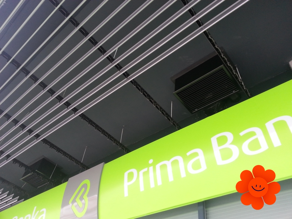 Prima Banke sme zabezpečili: vetranie bankových priestorov rekuperačnou vzduchotechnickou jednotkou zn. Toshiba, vetranie hygienickej miestnosti potrubným ventilátorom a chladenie bankovej haly kanálovými jednotkami zn. Toshiba.