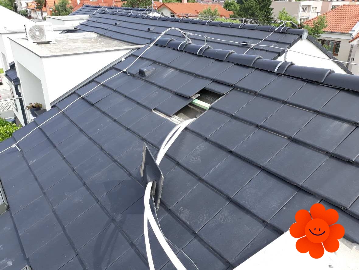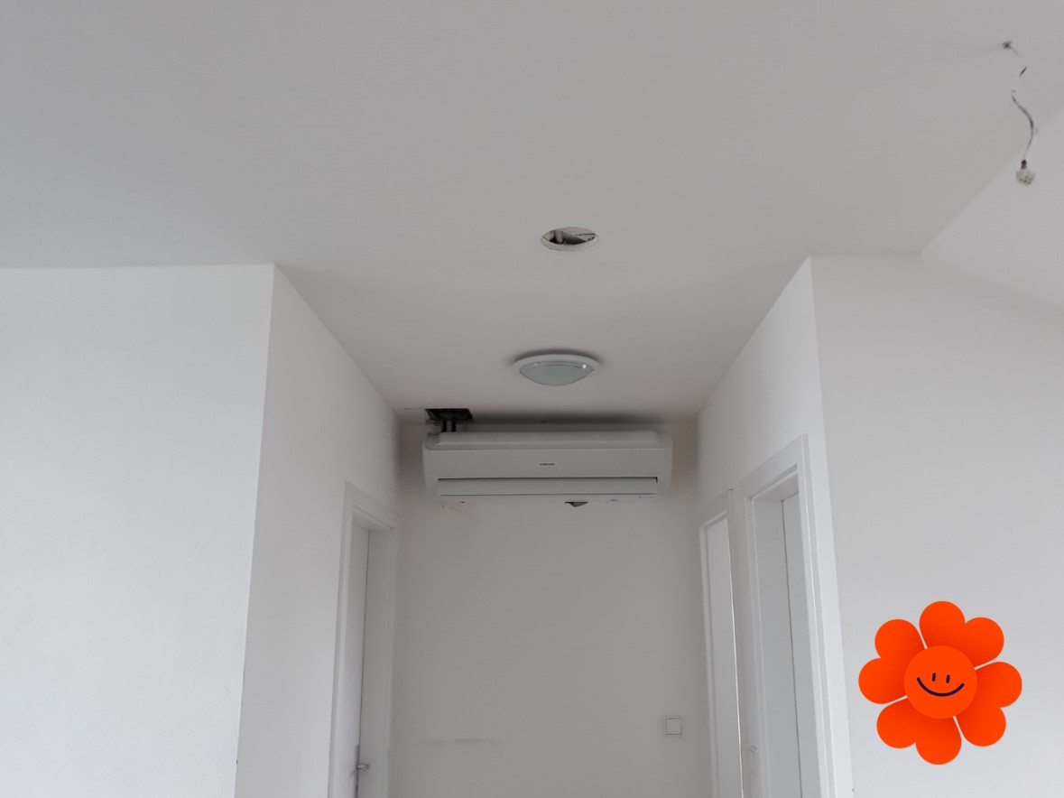 Montáž klimatizácie Samsung AR9500 Wind-Free Standard v rodinnom dome pod strop. Rozvody sú vedené pod strešnou krytinou.