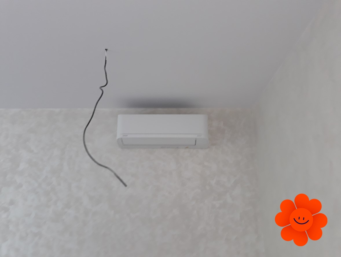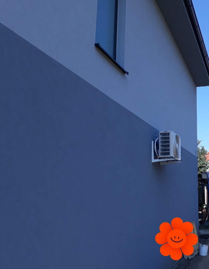 Montáž klimatizácie Toshiba Suzumi Plus v rodinnom dome. Rozvody sú vedené skrz stenu k vonkajšej jednotke, ktorá je usadené na konzolách nad zemou.