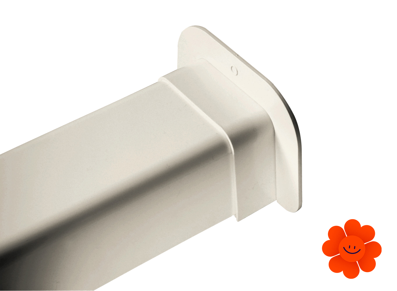 Plastová rovná priechodka 0910PM slúži na ukončenie plastového potrubia na uloženie rozvodov klimatizácie pri prechode cez stenu.