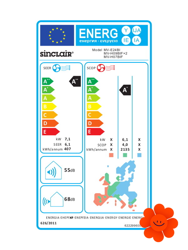 Klimatizácie Sinclair sú schopné prevádzky aj za teplôt -15°C (chladenie) až -30°C (kúrenie). Pri zmene vonkajšej teploty sa zmení frekvencia kompresoru a rýchlosť ventilátora sa prispôsobí.