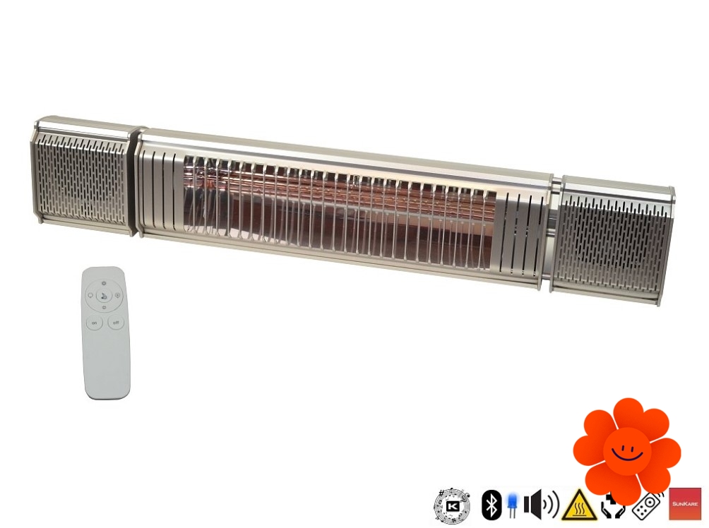 Bluetooth stereo reproduktory infražiariča sa postarajú o výborné ozvučenie miestnosti. Až 4 výkonné stereo reproduktory sú Vám k dispozícií. Cez bluetooth alebo aplikáciu SunKare dokážete ovládať hlasitosť. Cez bluetooth môžete prehrávať hudbu. Každopádne nemôžete ovládať hudbu na dvoch vykurovacích zariadeniach súčasne skrz jeden telefón.