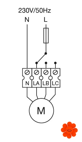 Motor je trojrýchlostný asynchrónny s rozbehovým kondenzátorom. Má tepelnú ochranu proti prehriatiu a dvojitú izoláciu. Regulácia otáčok pomocou plynulého regulátora REB alebo prepínačom otáčok INTER 4P.