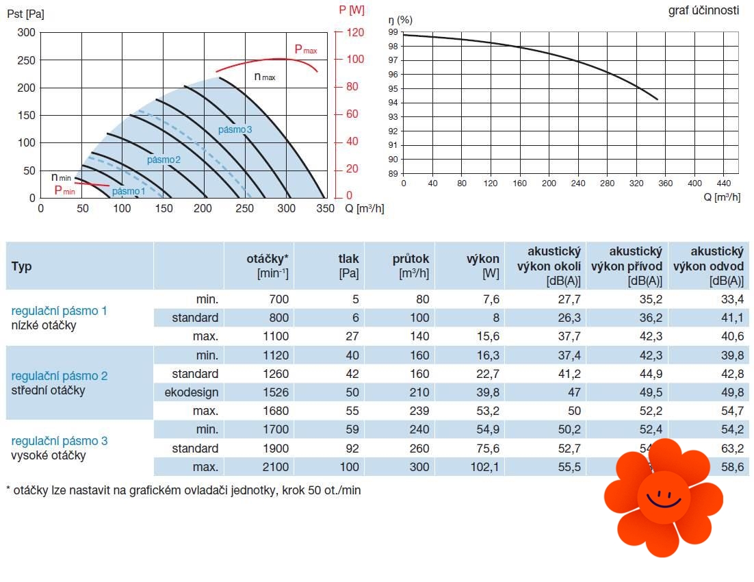 Max. vzduchový výkon | 260/160/100 m³/h | |